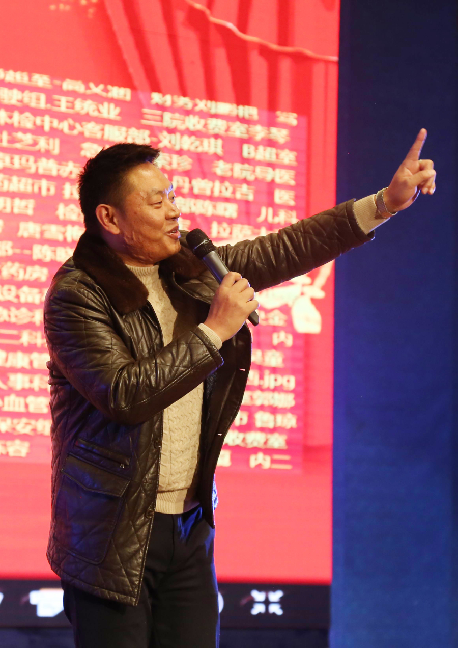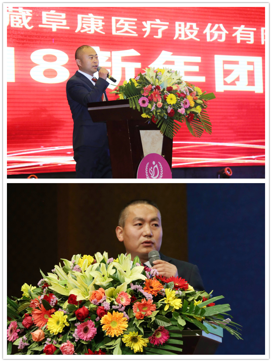 隨后,董事長王斌走上講臺飽含激情地說"我之存在,因為有你”,并向所有來賓鞠躬致謝。董事長王斌講述了阜康發(fā)展史、阜康人的奮斗史,從2005年的47名員工到現(xiàn)在的1024名員工,并再次感謝一路伴隨阜康成長的所有人,還指出2018年是阜康發(fā)展史上很關(guān)鍵的一年,要早計劃、早安排、早部署,要以十九大精神為指導(dǎo),堅持科學(xué)發(fā)展觀,早日把阜康建設(shè)成為現(xiàn)代化醫(yī)院。