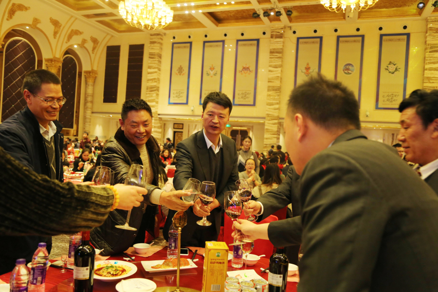 晚宴尾聲,董事長王斌邀請所有院級領(lǐng)導(dǎo)上臺共同舉杯說:"希望大家在新的一年繼續(xù)沿著創(chuàng)新的道路團(tuán)結(jié)一致、規(guī)范管理、用心服務(wù),開源節(jié)流地做好自己本職和醫(yī)院的工作。我相信,在各位阜康同仁的共同努力下,2018年我們一定會保質(zhì)、保量完成工作計劃。為保障西藏自治區(qū)廣大人民群眾的身體健康做出新的更大的貢獻(xiàn),促進(jìn)醫(yī)院健康、持續(xù)、穩(wěn)步地向前發(fā)展,更上一層樓,再鑄新輝煌! ”