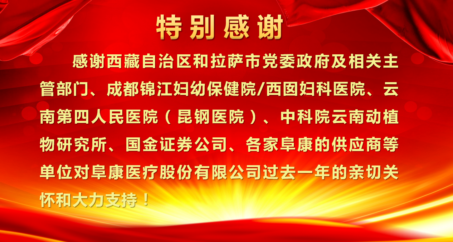 我之存在,因為有你;百年阜康,感恩有您。感恩是一種態(tài)度、一種美德、一種情懷!不忘初心、砥礪前行,感謝你們的一路陪伴,阜康的輝煌離不開每一位阜康人的奉獻(xiàn),雄關(guān)漫道真如鐵,而今邁步重頭越!2018年將是阜康騰飛的一年,在各級領(lǐng)導(dǎo)關(guān)心下,各位同仁支持下,阜康一年更比一年好!以十九大精神為指導(dǎo),努力打造"團(tuán)結(jié)、創(chuàng)新、規(guī)范、節(jié)約、用心”五位一體的現(xiàn)代化醫(yī)院!為西藏人民群眾解決看病遠(yuǎn)、看病難、看病貴的問題,全心全意為西藏人民健康服務(wù)!