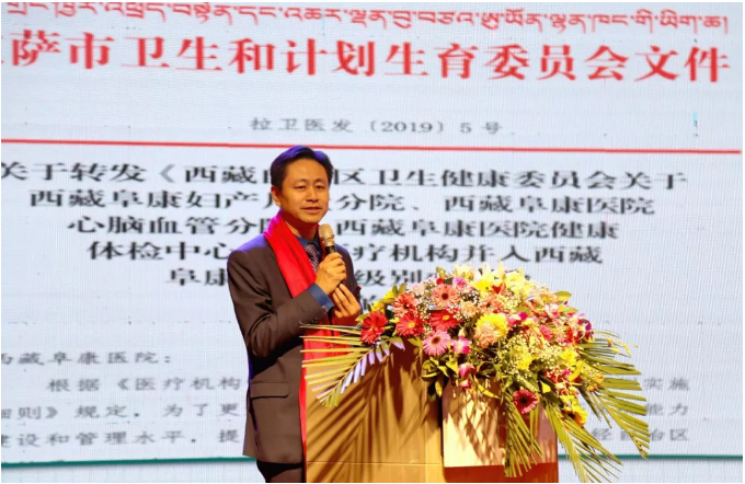 本次大會特邀嘉賓有:西藏自治區政協副主席、西藏自治區工商聯主席、西藏自治區總商會會長阿沛·晉源,西藏自治區工商聯黨組成員、西藏自治區工商聯副主席巴桑多吉,中國農業銀行西藏分行黨委委員副行長、兼拉薩分行黨委書記行長羅布,西藏玉拓醫療健康養老產業有限責任公司專職副總經理魯玲華。西藏阜康醫療高級顧問歐珠羅布主持大會。