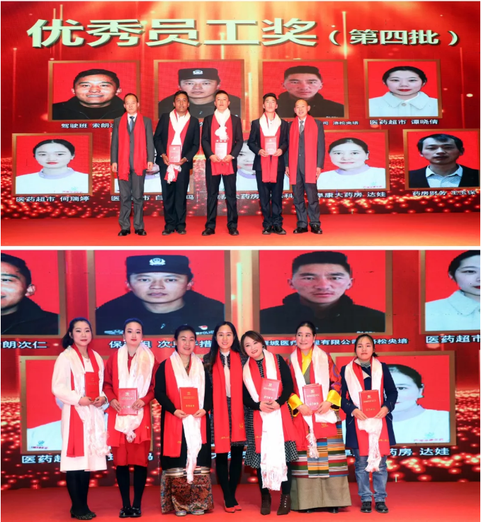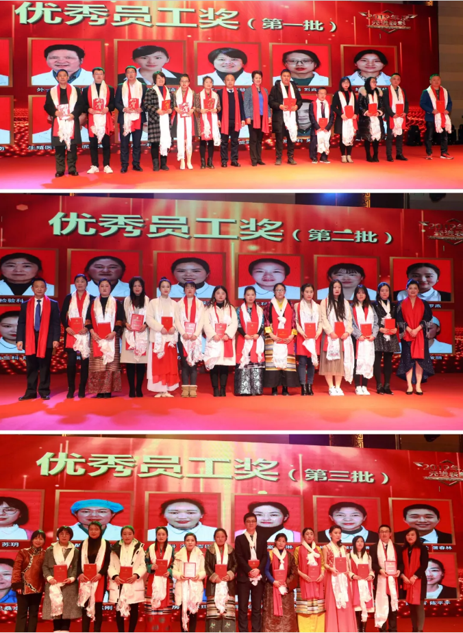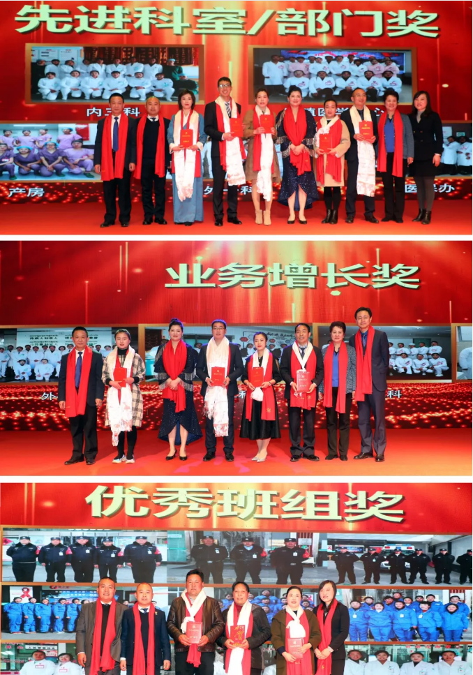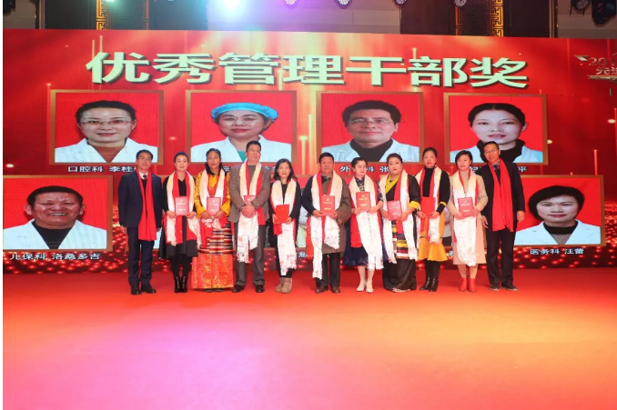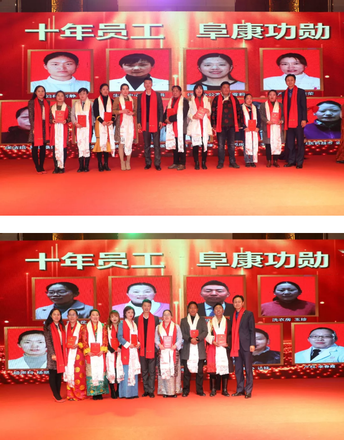 隨后,西藏阜康醫院業務院長劉連福宣讀了《關于2019年度西藏阜康醫療股份有限公司榮獲先進獎項及名單的表彰決定》,除了對先進個人和集體進行表彰,本次大會還為"10年員工”進行表彰并獎勵一萬元,董事長王斌率院領導為先進集體和優秀個人頒發了證書和獎金。