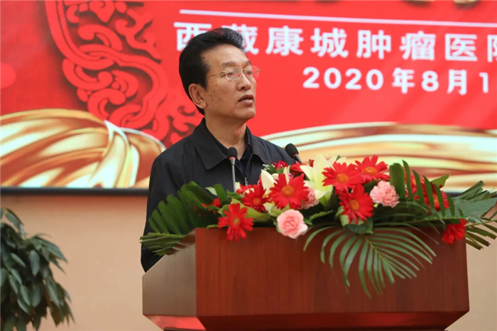 四川省腫瘤醫院黨委書記、第八屆中華醫學會放射腫瘤治療學分會主任委員、腫瘤學首席專家、中央干保委專家郎錦義教授代表四川省腫瘤醫院黨委對四川省腫瘤醫院(集團)拉薩分院暨西藏康城腫瘤醫院的開診表示熱烈祝賀。