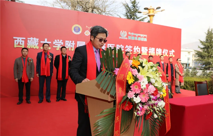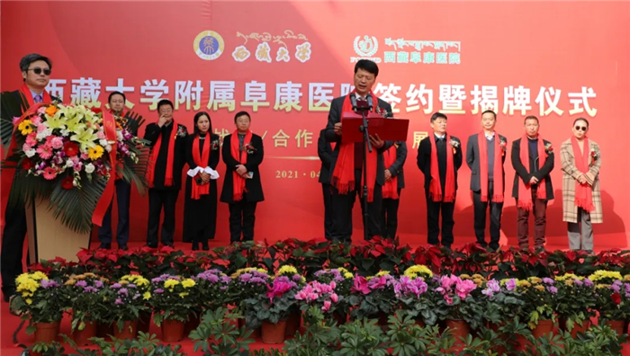 王斌董事長在致辭中說,在黨委、政府的關(guān)懷之下,在主管部門的指導(dǎo)之下,在全區(qū)人民和社會各界的支持之下,西藏阜康醫(yī)院經(jīng)過十六年的發(fā)展,已經(jīng)成為一家現(xiàn)代化綜合性三級民營醫(yī)院。此次西藏大學(xué)與西藏阜康醫(yī)院的"聯(lián)姻”,開啟了地方高校與民營醫(yī)院深度合作的先河,西藏阜康醫(yī)院成為西藏大學(xué)的附屬醫(yī)院,體現(xiàn)了西藏大學(xué)對阜康醫(yī)院的信任,同時(shí)也為阜康醫(yī)院的發(fā)展注入了"強(qiáng)心劑”,雙方的合作一定能實(shí)現(xiàn)優(yōu)勢互補(bǔ)、資源共享、互利雙贏,補(bǔ)齊短板的預(yù)期目的。