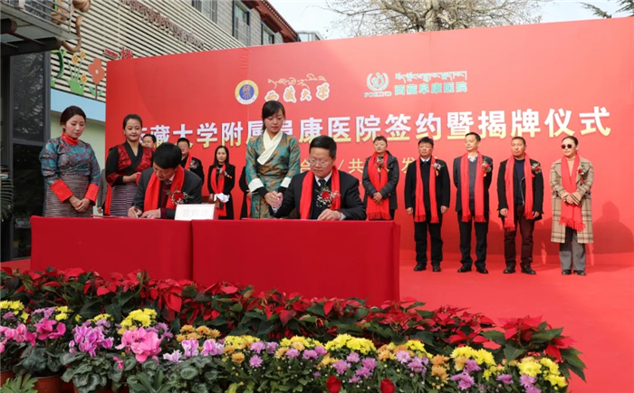 在現(xiàn)場各位嘉賓的見證下,西藏大學(xué)黨委副書記、校長紀(jì)建洲,與西藏阜康醫(yī)療股份有限公司黨委書記、董事長王斌在共建附屬醫(yī)院協(xié)議上簽字。協(xié)議的簽署,標(biāo)志著西藏大學(xué)和西藏阜康醫(yī)院開啟合作的新征程,雙方將攜手為西藏的高等醫(yī)學(xué)教育和醫(yī)療衛(wèi)生事業(yè)發(fā)展做出新的貢獻(xiàn)。
