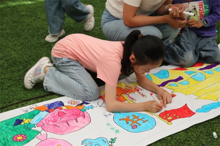 在祖國母親即將迎來75歲生日之際,我們以一幅長達十米的壯麗涂鴉,向偉大的祖國母親致以最深的敬意與最熱烈的祝福。天安門城樓、五星紅旗、天壇公園……我們用手中的畫筆,將對祖國的熱愛與祝福融入每一筆、每一劃之中。