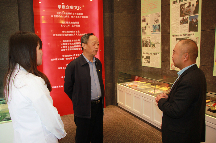 在阜康醫(yī)院五樓院史館,劉連福向劉家杰一行介紹了阜康醫(yī)療不平凡的發(fā)展歷程以及阜康人在黨的建設、抗震救災、公益事業(yè)、企業(yè)文化等方面的成就,劉家杰一行對阜康醫(yī)療各方面的工作表示充分認可并對"阜康”中所含的物阜民康——"物產豐富,民族安康”之意表現出極大的興趣,希望通過阜康人在醫(yī)藥領域的不懈努力,勇于攀登醫(yī)學高峰,為西藏的醫(yī)療發(fā)展貢獻力量。