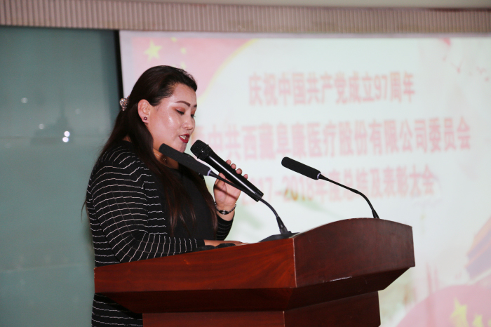 優秀黨務工作者索珍作代表發言。她由衷感謝公司黨委的信任,表示自己會把這份信任變為工作的動力,進一步提高對患者的服務能力和水平,為醫院的發展貢獻自己的力量,不辱一個新時代共產黨員的光榮使命。